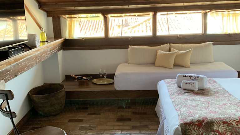Das Hotel Pousada Arte Urquijo ist eine charmante Unterkunft im historischen Zentrum von Paraty. Hier können Sie den Komfort eines Pools, eines Wintergartens und einer Terrasse mit Hängematten genießen. Die Zimmer sind mit lokalen Kunstwerken dekoriert und bieten allen Komfort für einen angenehmen Aufenthalt. Das Frühstücksbuffet verwöhnt Sie mit frischen Früchten und Säften, während die Bar eine Auswahl an erfrischenden Getränken bietet. Das Hotel bietet auch verschiedene Aktivitäten wie Stadtrundfahrten, Bootstouren, Ausritte und Tauchausflüge an, um Ihren Aufenthalt unvergesslich zu machen.