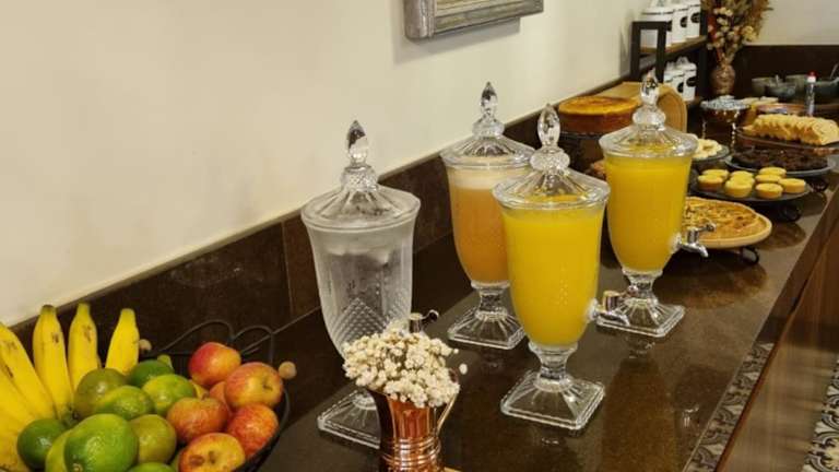 Beginnen Sie Ihren Tag mit einem leckeren Frühstück vom Buffet im Hotel Pousada Clássica. Sie haben eine Auswahl an frischem Obst, Brot, Aufschnitt sowie warmen und kalten Getränken. Zusätzlich wird Ihnen täglich ein kostenloser Nachmittagstee serviert.