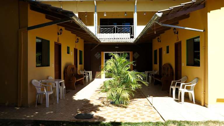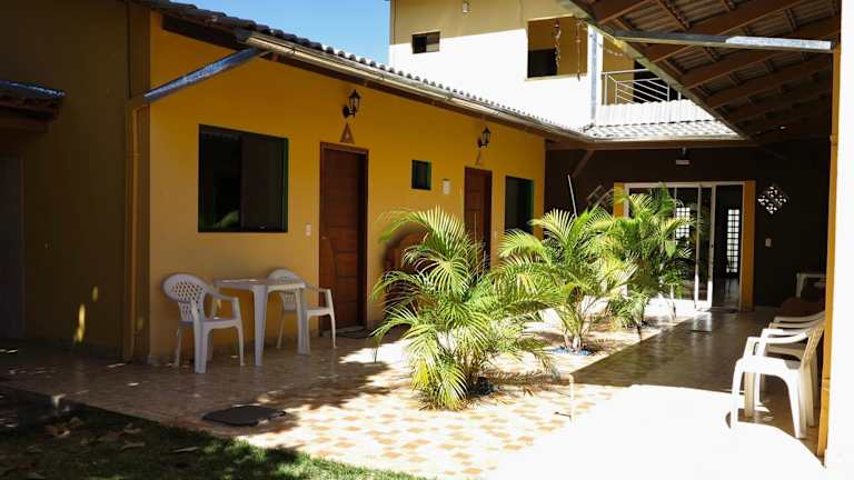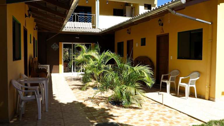 Die Pousada Corazao Sagradao in Abadiânia ist eine charmante Unterkunft, die klimatisierte Zimmer mit kostenfreiem WLAN und Zugang zu einem schönen Garten und einer Terrasse bietet. Das kontinentale Frühstück am Morgen sorgt für einen guten Start in den Tag, und die Gemeinschaftslounge lädt zum Entspannen ein. Der Flughafen Santa Genoveva/Goiania ist ca. 79 km entfernt, und die Unterkunft bietet einen kostenpflichtigen Flughafentransfer an.