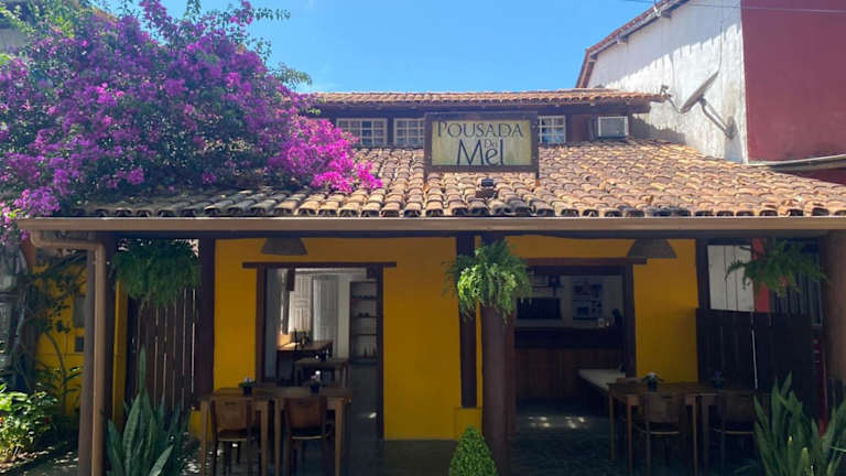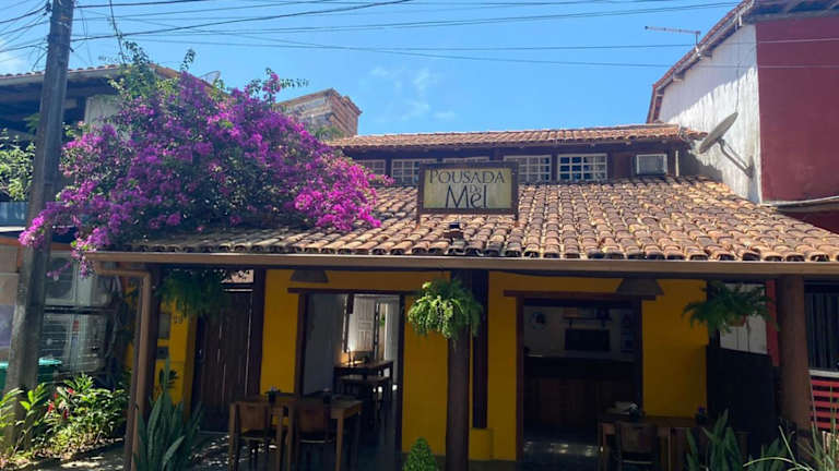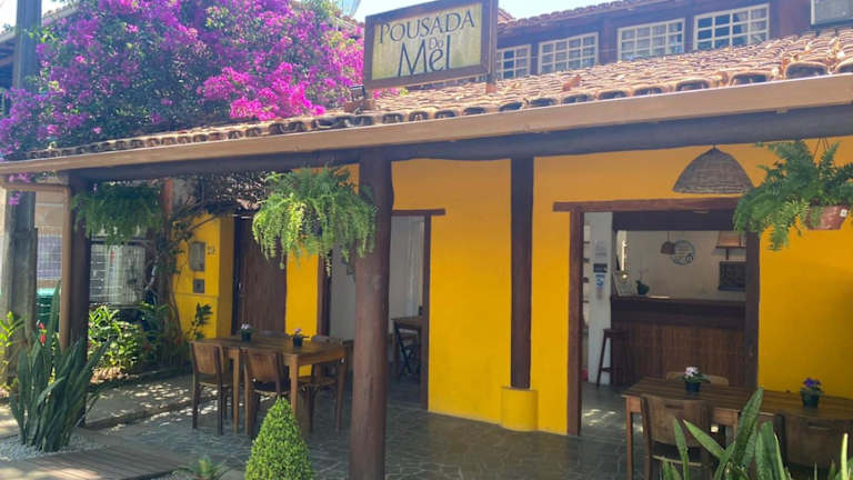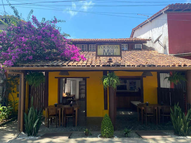 Die Pousada do Mel ist eine gemütliche Unterkunft im Zentrum von Arraial D'Ajuda, die eine einfache und heimelige Atmosphäre bietet. Genießen Sie das kostenlose WLAN, das Frühstücksbuffet und die geräumigen Zimmer mit Klimaanlage und TV. Die Pension ist ideal gelegen, nur wenige Meter vom Mucuge-Platz entfernt und in der Nähe des Flughafens und des Busterminals von Porto Seguro.