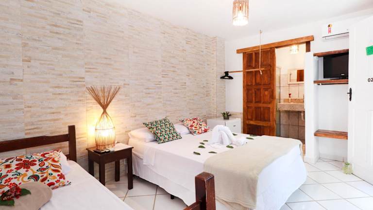 Die Zimmer in der Pousada do Mel sind schlicht und geräumig, bieten aber alle notwendigen Annehmlichkeiten für einen angenehmen Aufenthalt. Jedes Zimmer verfügt über eine Klimaanlage, einen TV und eine Minibar. Das eigene Bad ist mit einer Dusche ausgestattet.