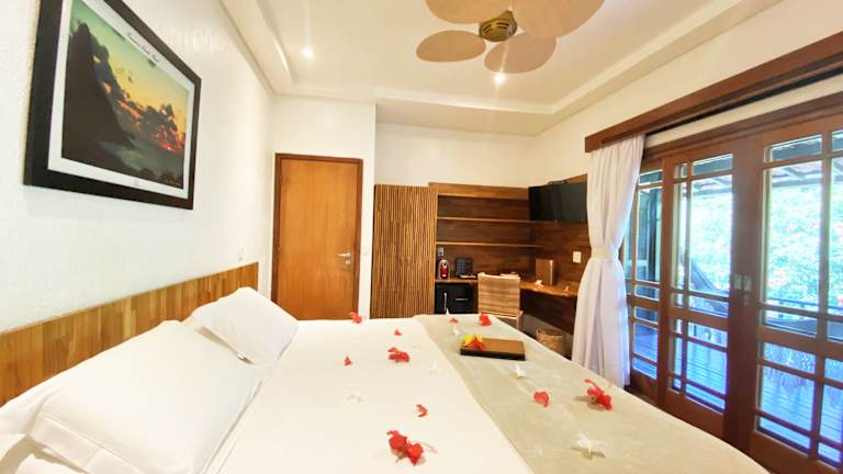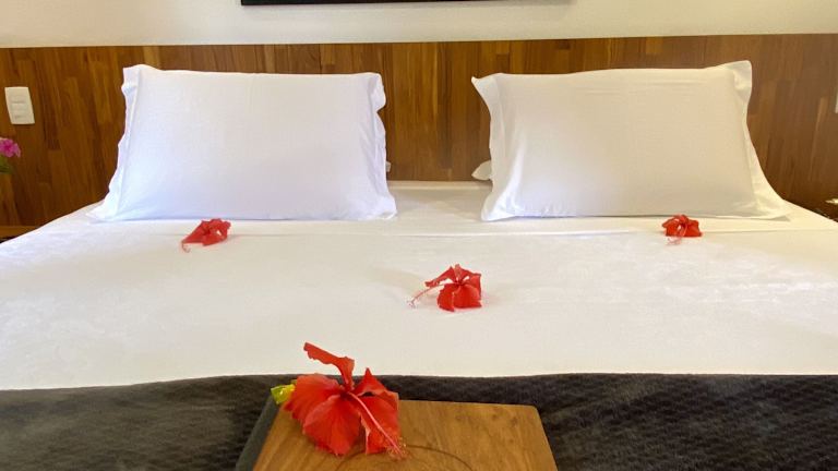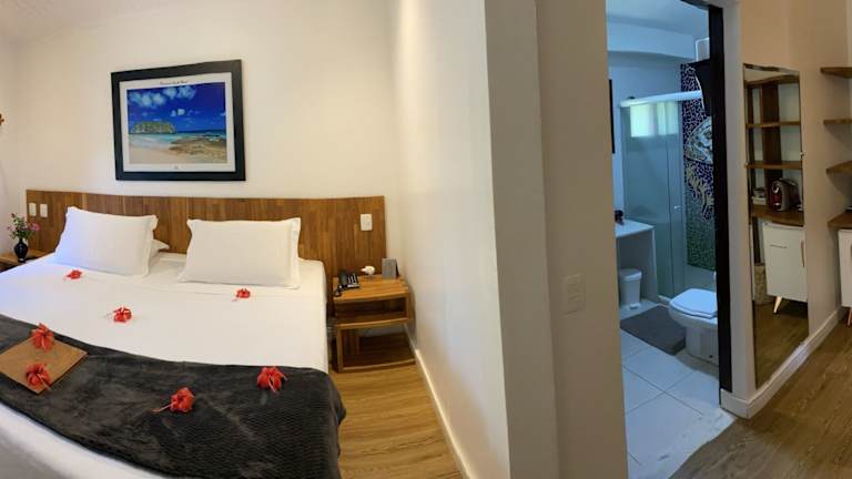 Die Zimmer in der Pousada do Vale sind liebevoll gestaltet und bieten einen angenehmen Rückzugsort nach einem Tag am Strand. Die farbenfrohe Bettwäsche, Fliesenböden und Verdunklungsvorhänge schaffen eine gemütliche Atmosphäre. Zur Ausstattung gehören Klimaanlage, Kabel-TV und eine Minibar. Kostenfreies WLAN steht sowohl in den Zimmern als auch im gesamten Hotel zur Verfügung.