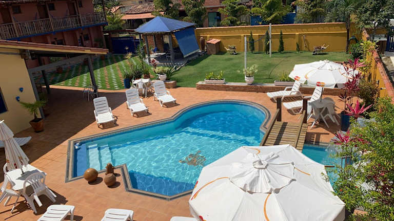Das Pousada dos Corais in Itaúnas ist eine ideale Unterkunft im Stadtzentrum für einen entspannten Urlaub. Mit einem Außenpool, einer Bar und kostenfreiem WLAN bietet die Pousada komfortable Zimmer mit farbenfroher Einrichtung und Gartenblick. Das Frühstücksbuffet ist kostenlos und die Unterkunft verfügt über Privatparkplätze. In der Nähe befinden sich der Strand Praia de Itaúnas und der Fluss Riacho Doce.