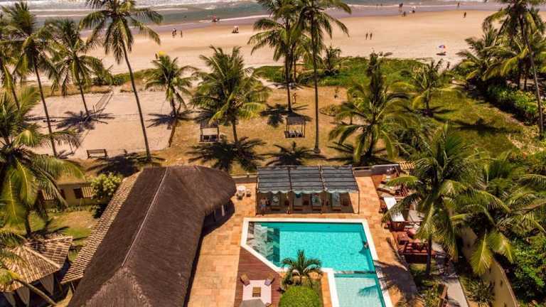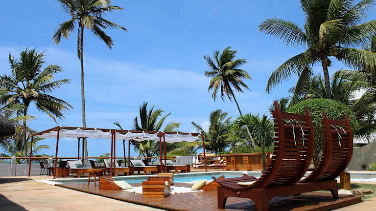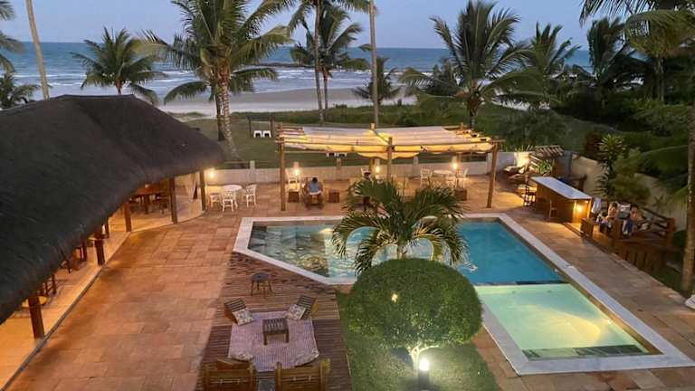 Das Pousada dos Hibiscus an der Costa do Cacau in Bahia bietet seinen Gästen eine traumhafte Unterkunft direkt am Strand mit uneingeschränktem Meerblick. Genießen Sie den Komfort kostenfreien WLANs, eines Parkplatzes sowie eines Pools mit Whirlpool. Das helle und geräumige Zimmer sind mit Klimaanlage, Sat-TV und Minibar ausgestattet. Entspannen Sie am Pool, in den Hängematten oder lassen Sie sich im Restaurant mit brasilianischen Spezialitäten verwöhnen. Die Lage der Pousada ist ideal, nur wenige Kilometer vom Zentrum von Ilhéus und dem Flughafen entfernt.