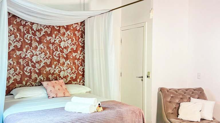 Die Zimmer im Pousada Essência do Sol sind geschmackvoll eingerichtet und individuell gestaltet. Jedes Zimmer ist mit Kunstwerken und warmer Beleuchtung ausgestattet, um eine einladende und gemütliche Atmosphäre zu schaffen. Einige Zimmer verfügen über eine Whirlpool-Badewanne, die Ihnen zusätzlichen Komfort bietet. Vertikale Duschköpfe sorgen für ein erfrischendes Duscherlebnis. Zur weiteren Ausstattung der Zimmer gehören ein Flachbild-Kabel-TV und eine Minibar. WLAN nutzen Sie in den öffentlichen Bereichen kostenfrei.
