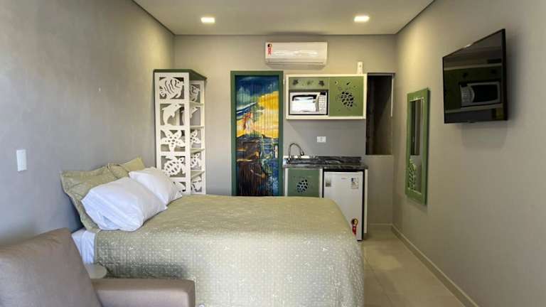 Die Zimmer im Pousada Guaricana sind komfortabel und bieten Annehmlichkeiten wie kostenfreies WLAN und einen Zimmerservice. Einige Zimmer verfügen über einen Balkon mit Stadtblick, der Ihnen einen schönen Ausblick auf die Umgebung bietet. Das Hotel verfügt auch über einen Außenpool, in dem Sie sich erfrischen können, sowie kostenfreie Privatparkplätze für Ihren Komfort.