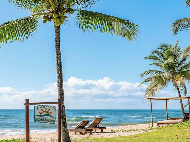 Das Pousada Lagoa do Cassange ist eine charmante Unterkunft am Praia do Cassange, etwa 30 km von Itacaré entfernt. Hier können Sie einen erholsamen Urlaub direkt am Strand und mit Zugang zu einer malerischen Lagune genießen. Die klimatisierten Zimmer verfügen über einen Balkon oder eine Terrasse und bieten Annehmlichkeiten wie einen Kühlschrank, einen Schreibtisch, einen Safe und ein eigenes Bad mit solarbeheizter Dusche. Kostenloses WLAN ist in der gesamten Unterkunft verfügbar. Entspannen Sie in der gemeinsamen Lounge oder genießen Sie regionale Küche im hoteleigenen Restaurant. Kostenlose Privatparkplätze stehen zur Verfügung. In der Umgebung gibt es eine Vielzahl von Aktivitäten wie Schnorcheln, Kajakfahren und Kanufahren, die Ihnen ein abwechslungsreiches Freizeitangebot bieten.