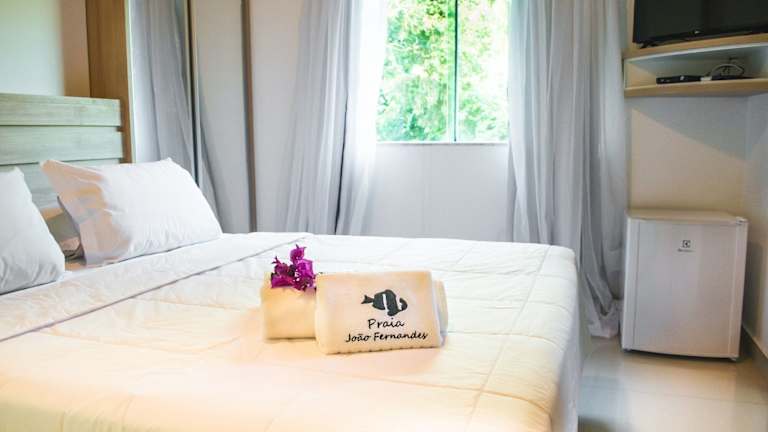 Das Hotel Pousada Praia João Fernandes verfügt über 19 Zimmer, die in einem 3-stöckigen Haupthaus und 4 Nebengebäuden untergebracht sind. Jedes Zimmer ist komfortabel eingerichtet und verfügt über eine Klimaanlage, eine Minibar, ein Telefon, einen Fernseher mit Kabelempfang und WLAN. Die Badezimmer sind mit einer Dusche, einer Badewanne und einem Haartrockner ausgestattet und bieten auch Kosmetikartikel.