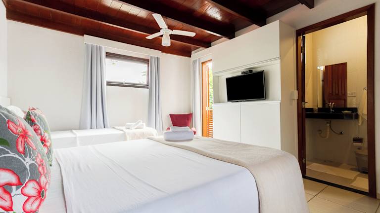 Die Zimmer im Pousada Recanto do Jabaquara sind einfach, aber gemütlich eingerichtet und verfügen über alle notwendigen Annehmlichkeiten für einen angenehmen Aufenthalt. Jedes Zimmer ist mit einem Ventilator oder einer Klimaanlage, einem TV und einer Minibar ausgestattet. Das private Badezimmer verfügt über eine Dusche und wird mit frischer Bettwäsche und Handtüchern geliefert. Einige Zimmer bieten zudem einen Balkon, von dem aus Sie den Blick auf die Umgebung genießen können.