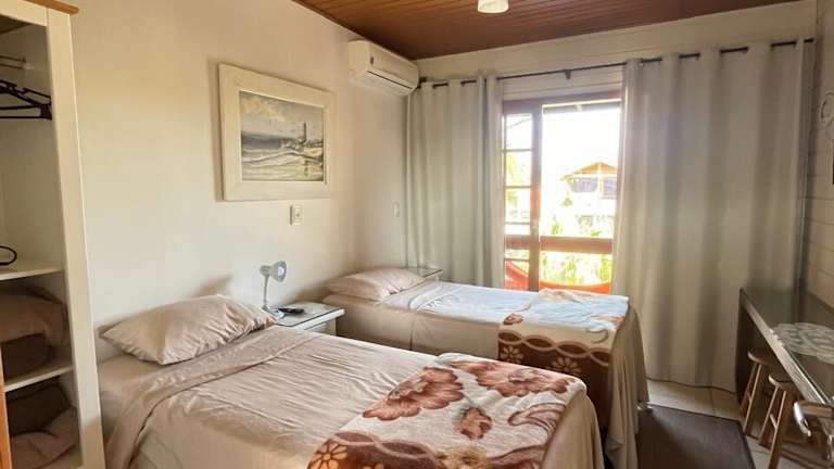 Die Pousada Recanto do Neca ist eine ideale Unterkunft für Ihren Aufenthalt in Florianópolis. Das Hotel liegt nur 200 m vom wunderschönen Strand Praia do Campeche entfernt und bietet komfortable Unterkünfte mit einem schönen Garten. Das kostenfreie WLAN und die kostenfreien Privatparkplätze sind weitere Pluspunkte. Entdecken Sie die umliegenden Attraktionen wie die Insel Campeche und das Einkaufszentrum Iguatemi Florianopolis. Die Zimmer sind modern eingerichtet und verfügen über ein eigenes Bad, einen Flachbild-TV und Klimaanlage. Einige Zimmer bieten zudem einen Balkon mit herrlichem Ausblick. Genießen Sie Ihren Aufenthalt und erkunden Sie die malerische Umgebung von Florianópolis, indem Sie Aktivitäten wie Wandern unternehmen.