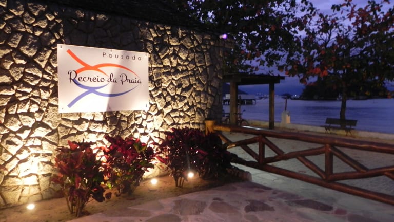 Das Hotel Pousada Recreio Da Praia in Vila do Abraão bietet seinen Gästen eine malerische Lage direkt am Meer mit einem atemberaubenden Blick auf die umliegenden Gipfel. Entspannen Sie im Pool mit Wasserfall und genießen Sie die tropische Atmosphäre des umliegenden Gartens. Die Zimmer im charmanten Kolonialstil sind mit Annehmlichkeiten wie Klimaanlage, LCD-TV und Minibar ausgestattet. Beginnen Sie Ihren Tag mit einem köstlichen Frühstücksbuffet und entspannen Sie anschließend in der Sauna. Dank der zentralen Lage erreichen Sie bequem Bars und Restaurants zu Fuß und können die Sehenswürdigkeiten von Vila do Abraão erkunden. Der Kirchplatz und der Pier Cais da Vila sind nur wenige Schritte entfernt und der Strand Praia Preta ist ebenfalls in der Nähe.