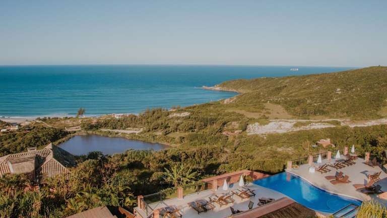 Die Pousada Remora liegt auf einem bewaldeten Hügel und bietet Ihnen einen atemberaubenden Panoramablick auf die Praia do Rosa und den Lago do Ibirapuera. Die Lage ist ideal, um die Schönheit der Umgebung zu erkunden. Das Stadtzentrum von Imbituba und der Busbahnhof sind etwa 20 km entfernt und die Strände von Da Vila und Garopaba erreichen Sie nach ca. 25 km.