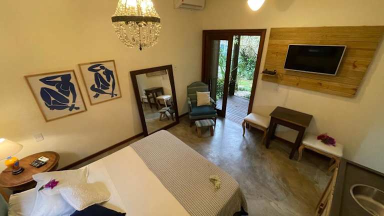 Die Zimmer im Pousada Santarina sind im warmen Kolonialstil eingerichtet und bieten eine gemütliche und komfortable Unterkunft. Die Zimmer sind mit großen Spiegeln und Holzdekor im Landhausstil gestaltet. Sie verfügen über Kabel-TV, eine Minibar und ein eigenes Badezimmer. Jedes Zimmer ist einladend und bietet Ihnen eine angenehme Atmosphäre für Ihren Aufenthalt.