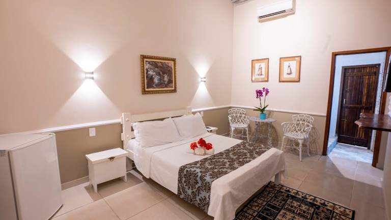 Die klimatisierten Zimmer sind im ländlichen Stil gehalten und verfügen über eine Terrasse mit Blick auf den Garten, einen Ventilator, einen Fernseher und eine Minibar. Jedes Zimmer hat ein eigenes Bad mit einer Dusche, und einige bieten eine Whirlpool-Badewanne zur Entspannung.