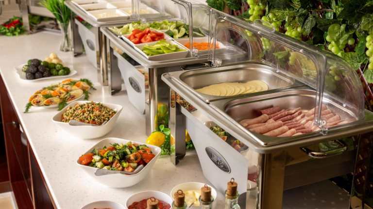 Zu den Verpflegungsmöglichkeiten gehört ein Restaurant, das eine Vielzahl an Gerichten bietet, darunter russische, lokale und asiatische Küche. Das Frühstück wird als Buffet, à la carte oder kontinentales Frühstück angeboten. Zudem sind auf Anfrage vegetarische, halal-zubereitete und vegane Optionen erhältlich.