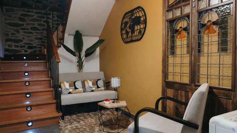 Das Hotel bietet 7 charmante Zimmer, die jeweils mit einem ansprechenden Dekor in Pastellfarben gestaltet sind. Die Zimmer verfügen über Holzböden und bieten einen herrlichen Ausblick auf die Kathedrale von Santiago. Zur Ausstattung gehören kostenloses WLAN, ein Flachbild-TV und ein Badezimmer mit einem Haartrockner.