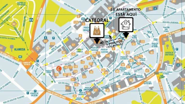 Das Hotel Campanas de San Juan befindet sich im historischen Zentrum von Santiago de Compostela, nur wenige Schritte von der berühmten Kathedrale entfernt. Die Lage ist ideal, um die Sehenswürdigkeiten der Stadt zu erkunden. Das Hotel liegt neben dem Kloster San Martín Pinario und in unmittelbarer Nähe der Universität von Santiago de Compostela. Der Bahnhof der Stadt ist in nur 10 Gehminuten zu erreichen.