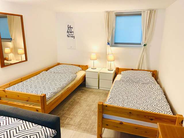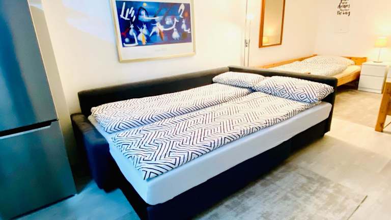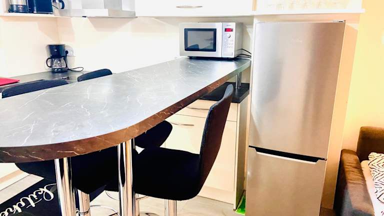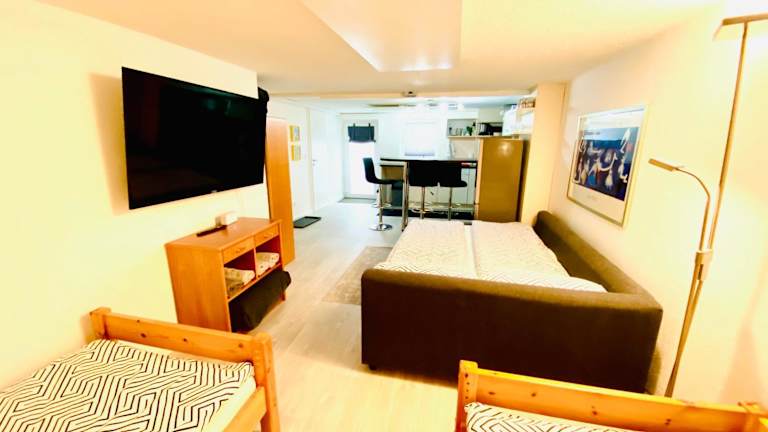 Die Ferienwohnung verfügt über 1 Schlafzimmer, ein Wohnzimmer und eine voll ausgestattete Küche mit Kühlschrank und Kaffeemaschine. Ein Badezimmer mit Dusche und Haartrockner ist ebenfalls vorhanden. Handtücher und Bettwäsche werden zur Verfügung gestellt.