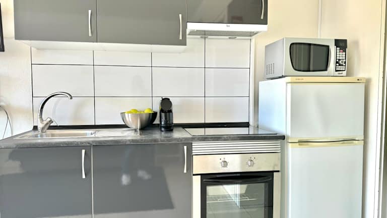 Die Ferienwohnung verfügt über 1 Schlafzimmer, ein Wohnzimmer und eine voll ausgestattete Küchenzeile mit Kühlschrank und Kaffeemaschine. Zudem bietet die Unterkunft ein Badezimmer mit Dusche und Haartrockner. Handtücher und Bettwäsche sind ebenfalls vorhanden.