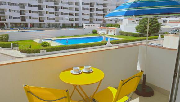 Die Unterkunft Praia Eulália verfügt über einen Balkon mit Meerblick, einen saisonalen Außenpool und einen Garten. Die Ferienwohnung ist klimatisiert und bietet einen einladenden Aufenthalt.