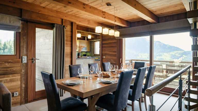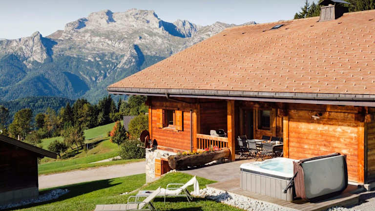 Das Luxury ski chalet hot tub & hammam nature setting & views - OVO Network in Manigod bietet eine luxuriöse Unterkunft zur Selbstverpflegung mit atemberaubender Aussicht und kostenfreiem WLAN. Das Chalet ist gut ausgestattet und verfügt über eine Küche, einen Flachbild-TV und Privatparkplätze. Entspannen Sie auf der Sonnenterrasse oder genießen Sie die zahlreichen Aktivitäten in der Umgebung wie Skifahren, Radfahren und Wandern.