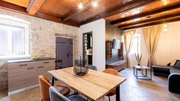 Das Hotel Prapatna in Smokvica ist der ideale Ort für einen erholsamen Urlaub. Mit kostenfreien Fahrrädern, einem Außenpool und einem Garten können Sie die schöne Umgebung erkunden und die atemberaubende Bergkulisse genießen. Das kostenfreie WLAN und die Privatparkplätze bieten zusätzlichen Komfort. Das Hotel bietet auch Aktivitäten wie Radfahren und Tischtennis an. Die Villa selbst verfügt über eine Terrasse mit Meerblick, 2 Schlafzimmer, ein Wohnzimmer, einen Flachbild-Sat-TV, eine voll ausgestattete Küche und 2 Badezimmer mit Dusche und Badewanne. Handtücher und Bettwäsche werden gestellt. Entspannen Sie in der gemütlichen Gemeinschaftslounge. Der Busbahnhof Korčula und der ACI-Yachthafen Korčula liegen in der Nähe. Der nächstgelegene Flughafen ist der internationale Flughafen Mostar, der 139 km entfernt ist.