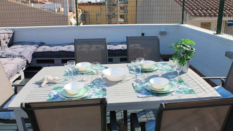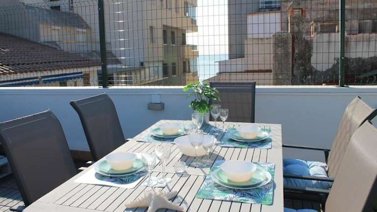 Die Unterkunft Precioso ático dúplex en Calafell Platja bietet einen Garten und eine Terrasse mit Meerblick. Die gesamte Unterkunft ist mit kostenlosem WLAN ausgestattet und klimatisiert.