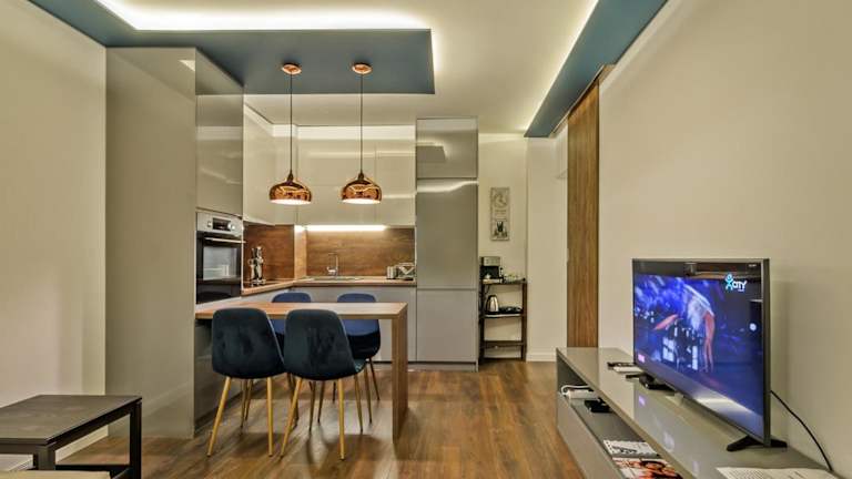 Das klimatisierte Apartment im Прекрасен апартамент Деси 3 в нова сграда bietet einen Balkon mit Blick auf den Innenhof. Das Apartment verfügt über ein Schlafzimmer, ein Badezimmer und eine gut ausgestattete Küche mit einem Backofen und einer Mikrowelle. Zur weiteren Ausstattung gehören ein Flachbild-Kabel-TV und eine Waschmaschine. Kostenloses WLAN steht ebenfalls zur Verfügung.