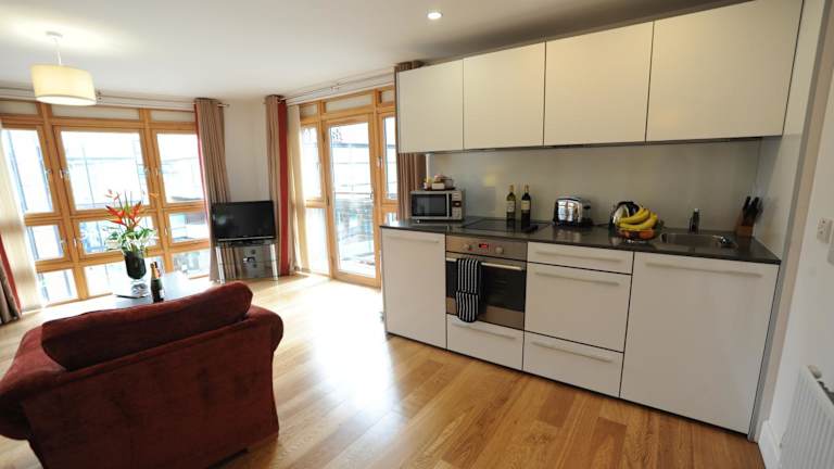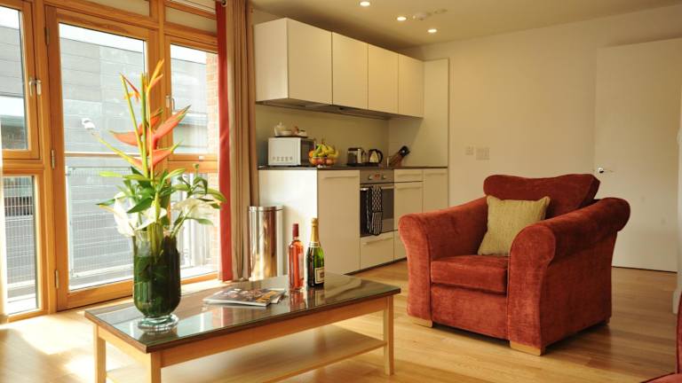 Die modernen Apartments verfügen über ein offen geschnittenes Wohn- und Esszimmer mit Freeview-TV und eine voll ausgestattete Küche, die mit einer Mikrowelle und einem Kühlschrank ausgestattet ist. Jedes Apartment ist mit einem großen eigenen Badezimmer ausgestattet. Die Unterkunft bietet zudem Nichtraucherzimmer, Einrichtungen für behinderte Gäste und Familienzimmer.