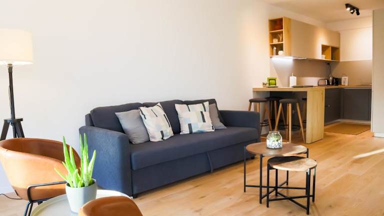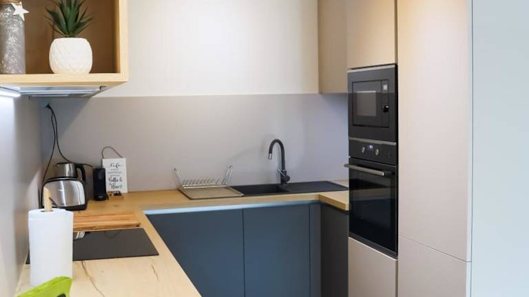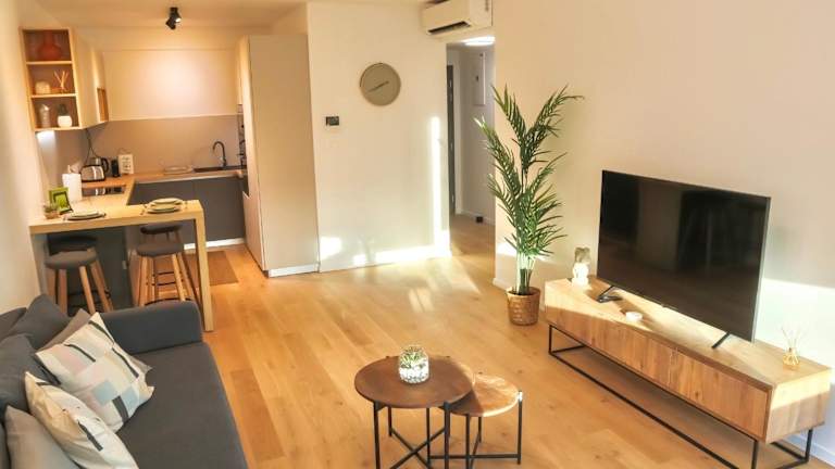 Die Ferienwohnung bietet eine Klimaanlage, besteht aus 1 Schlafzimmer, einem Wohnzimmer und einer voll ausgestatteten Küche, die mit einem Kühlschrank und einer Kaffeemaschine ausgestattet ist. Zudem gibt es ein Badezimmer mit einer Dusche und einem Whirlpool. Handtücher und Bettwäsche werden zur Verfügung gestellt.