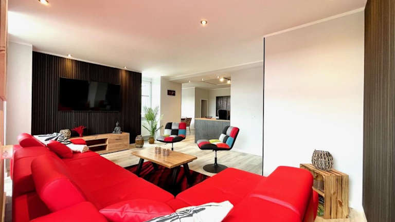 Das Premium Penthouse W46 Dresden ist eine hochwertige, zentral gelegene Ferienwohnung, die aus 3 Schlafzimmern, einem Wohnzimmer und einer voll ausgestatteten Küche besteht. Die Unterkunft bietet Annehmlichkeiten wie kostenfreies WLAN und einen Flachbild-TV.
