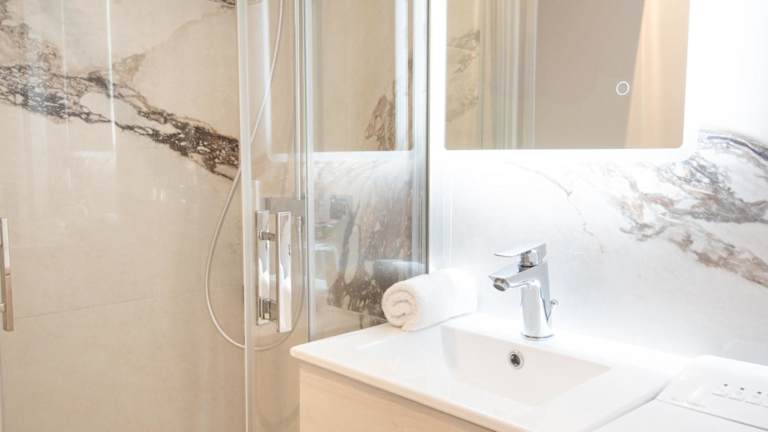 Die Unterkunft besteht aus einem Schlafzimmer, einem Wohnzimmer und einem Badezimmer mit Dusche und Haartrockner. Handtücher und Bettwäsche werden bereitgestellt.