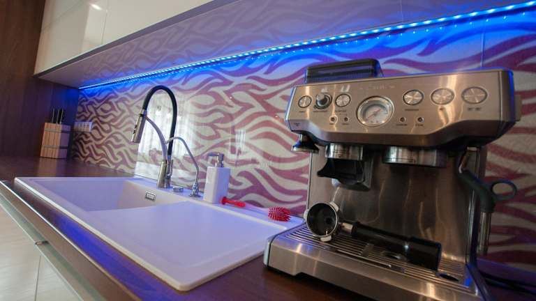 Das klimatisierte Apartment im Prestige Apartment verfügt über ein Schlafzimmer, ein Wohnzimmer und eine voll ausgestattete Küche. Die Küche ist mit einem Kühlschrank und einer Kaffeemaschine ausgestattet, so dass Sie Ihre eigenen Mahlzeiten zubereiten können. Das Badezimmer ist mit einer Dusche und einem Whirlpool ausgestattet, um Ihnen Entspannung zu bieten. Im Wohnzimmer finden Sie einen Flachbild-Sat-TV, einen Blu-ray-Player, eine Spielekonsole und einen CD-Player für Ihre Unterhaltung.