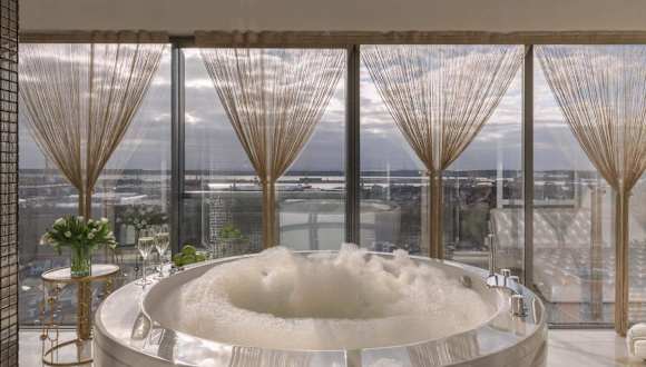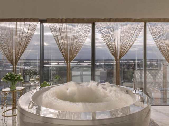 Das Prestige Jacuzzi Apartment by LIUKSAI bietet Übernachtungsmöglichkeiten mit Stadtblick sowie einen Balkon und eine Kaffeemaschine. Die Ferienwohnung ist klimatisiert und ausgestattet mit einem Schlafzimmer, einem Satelliten-Flachbild-TV und einer Küche, die mit einem Kühlschrank und einer Mikrowelle versehen ist. Zusätzlich stehen Gästen ein Whirlpool sowie ein Kinderspielplatz zur Verfügung.
