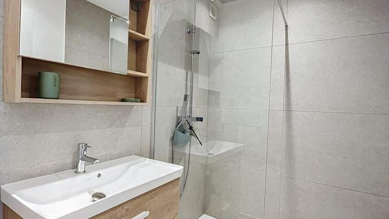 Die Ferienwohnung besteht aus einem Schlafzimmer, einem Wohnzimmer und einer voll ausgestatteten Küche, die mit einem Kühlschrank und einer Kaffeemaschine ausgestattet ist. Zudem gibt es ein Badezimmer mit einer Badewanne oder Dusche sowie einem Haartrockner. Ein Fernseher ist ebenfalls vorhanden.