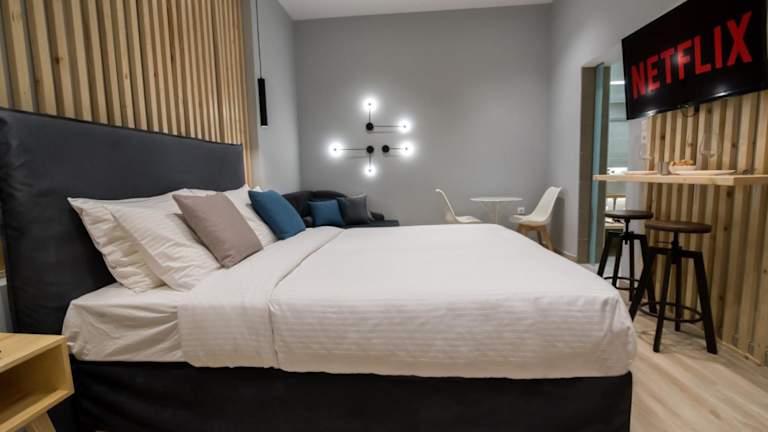 Preveza Suitestay Apartments Dodonis 28 bietet klimatisierte Übernachtungsmöglichkeiten mit kostenlosem WLAN und Zugang zu einer Terrasse. Die Apartments sind mit einer voll ausgestatteten Küche ausgestattet, einschließlich Kühlschrank, Herdplatte, Kaffeemaschine und Wasserkocher. Jedes Apartment verfügt über einen Esstisch sowie einen Flachbild-TV mit Kabelkanälen. Das eigene Badezimmer ist mit einer Dusche, kostenlosen Pflegeprodukten und einem Haartrockner ausgestattet.