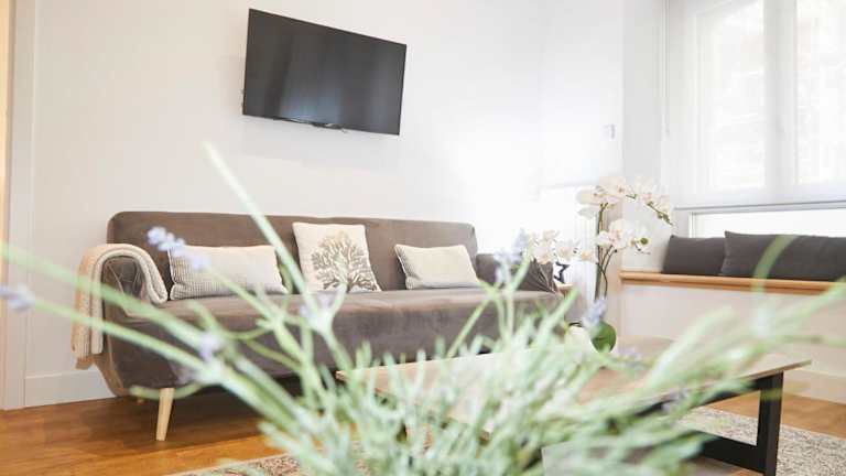 Die Ferienwohnung besteht aus zwei Schlafzimmern, einem Wohnzimmer und einer voll ausgestatteten Küche, die mit einem Kühlschrank und einer Kaffeemaschine ausgestattet ist. Es gibt ein Badezimmer mit Dusche und kostenlosen Pflegeprodukten. Handtücher und Bettwäsche werden bereitgestellt.