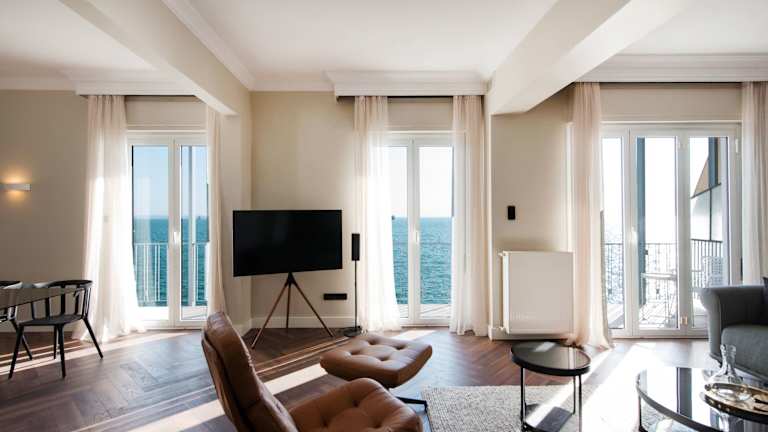 Die Primavera Seafront apt by halu! next to White Tower bietet eine voll ausgestattete Ferienwohnung mit Meerblick und Stadtblick von einem Balkon. Die Unterkunft ist klimatisiert und verfügt über drei Schlafzimmer, ein Wohnzimmer, eine voll ausgestattete Küche, ein Badezimmer mit Dusche und kostenlose Pflegeprodukte. Es stehen Handtücher und Bettwäsche zur Verfügung.