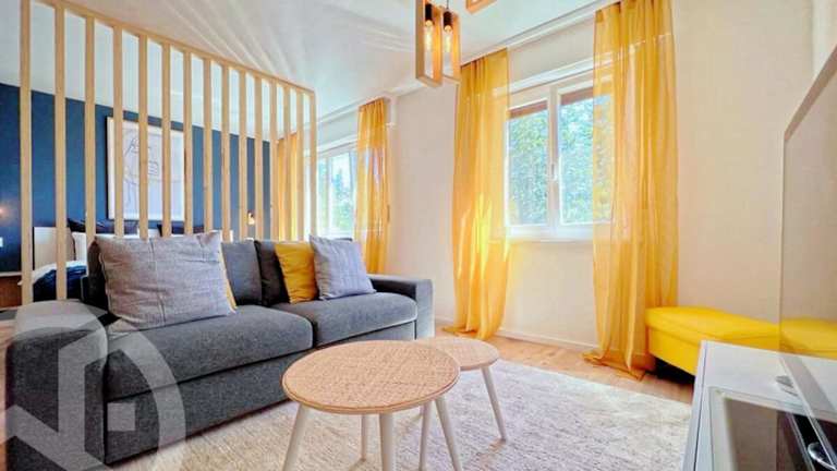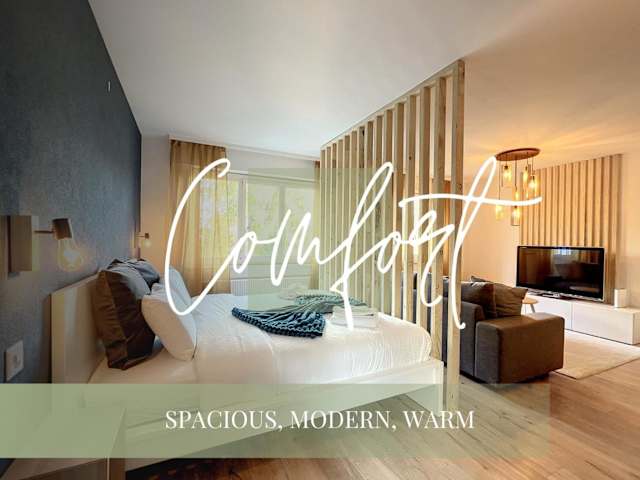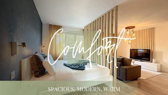 Die Ferienwohnung verfügt über 43m2 Wohnfläche, 1 Schlafzimmer, ein Wohnzimmer, einen Fernseher sowie eine gut ausgestattete Küche mit Kühlschrank und Geschirrspüler. Das Badezimmer ist mit einer Badewanne ausgestattet. Zur weiteren Ausstattung gehören Handtücher und Bettwäsche sowie eine Terrasse mit Stadtblick.