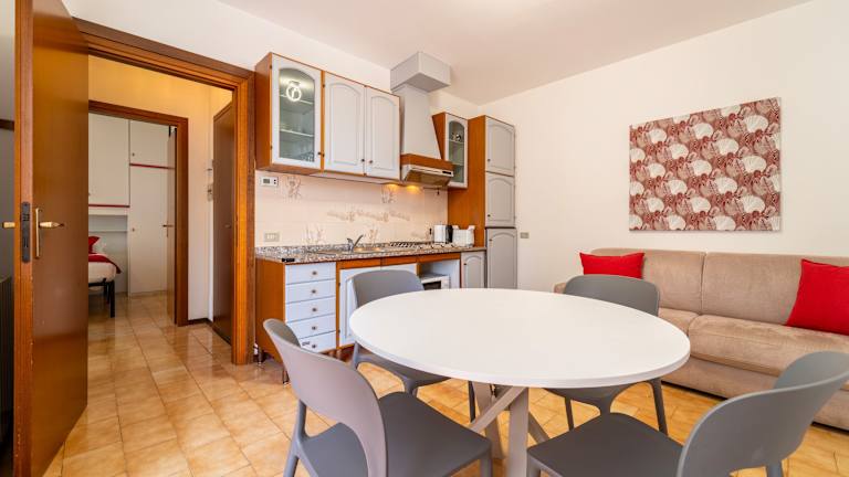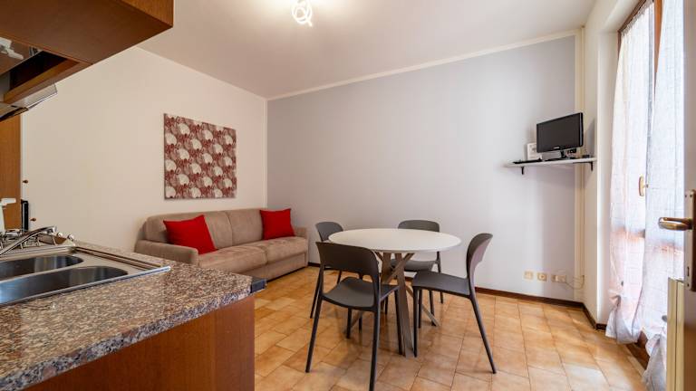 Die Ferienwohnung verfügt über 1 Schlafzimmer, ein Wohnzimmer und 1 Badezimmer mit einem Bidet. Zur Ausstattung gehören ein TV sowie eine gut ausgestattete Küche, die mit einem Kühlschrank und einer Mikrowelle ausgestattet ist. Ein Balkon mit Bergblick steht ebenfalls zur Verfügung. Handtücher und Bettwäsche werden angeboten.