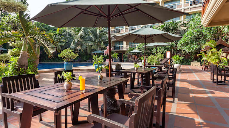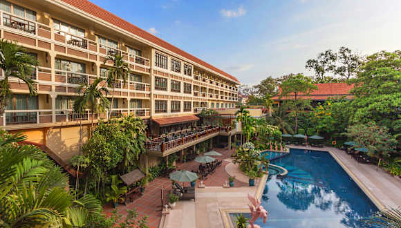 Das Prince d'Angkor Hotel & Spa liegt im historischen Stadtkern von Siem Reap und bietet seinen Gästen eine authentische kambodschanische Atmosphäre. Mit einer Vielzahl von Annehmlichkeiten wie einem Außenpool, einem Spa-Bereich und einem Fitnesscenter können Sie sich nach einem aufregenden Tag in der Stadt entspannen. Das Hotel verfügt über komfortable Zimmer, die mit traditionellen kambodschanischen Möbeln und modernen Annehmlichkeiten ausgestattet sind. Genießen Sie die kulinarischen Köstlichkeiten im hoteleigenen Restaurant und lassen Sie sich von der herzlichen Gastfreundschaft des Personals verwöhnen.