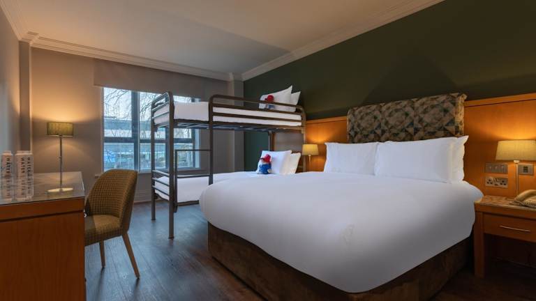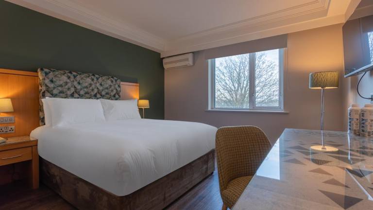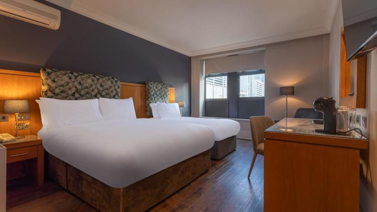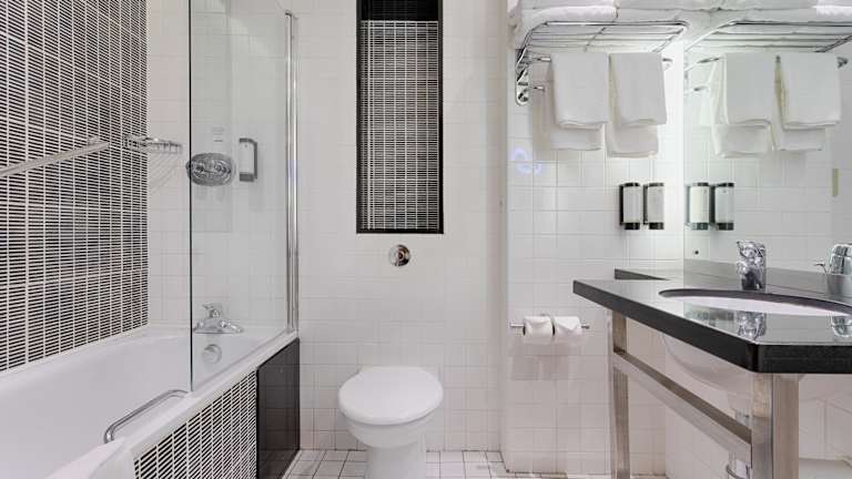 Die Zimmer sind mit Teppichböden ausgestattet und bieten ein Doppelbett. Weitere Annehmlichkeiten umfassen einen Safe, eine Minibar, einen Schreibtisch sowie eine Tee-/Kaffeemaschine. Zudem sind ein Bügelset und eine Hosenpresse vorhanden. Die technischen Einrichtungen beinhalten einen Direktwahltelefon, ein TV-Gerät, einen DVD-Player und kostenfreies WLAN. Die Badezimmer verfügen über eine Dusche und eine Badewanne und sind mit einem Haartrockner sowie Kosmetikartikeln ausgestattet. Barrierefreie Zimmer sind ebenfalls buchbar.