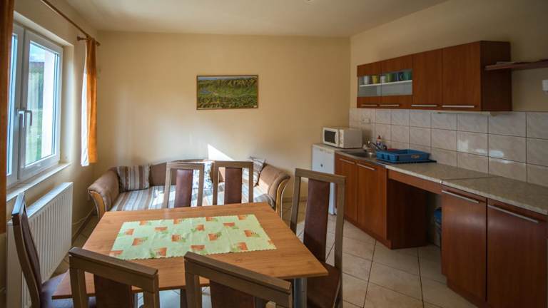 Die Unterkunft befindet sich in Liptovský Trnovec, nur 3,8 km vom Aquapark Tatralandia entfernt. In der Umgebung gibt es zahlreiche Möglichkeiten zum Wandern sowie Skifahren. Die Höhle Demänovská ľadová jaskyňa liegt 16 km entfernt, während Jasná sich 23 km von der Unterkunft befindet.
