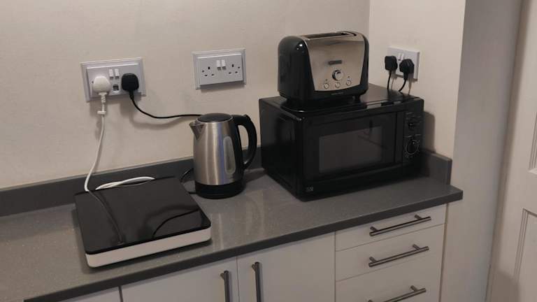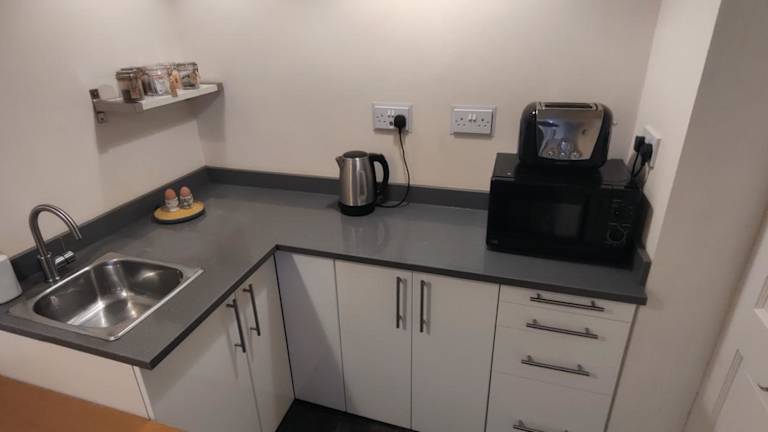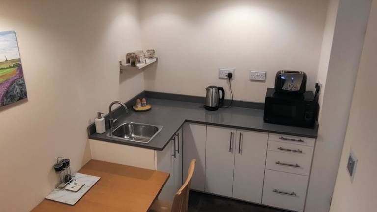 Das Apartment im Glenroyd House, Private Annex to Victorian villa with kitchen verfügt über ein gemütliches Schlafzimmer, eine voll ausgestattete Küche mit Kühlschrank und Mikrowelle sowie ein Badezimmer mit Dusche und kostenlosen Pflegeprodukten. Handtücher und Bettwäsche werden gestellt, um Ihnen einen komfortablen Aufenthalt zu ermöglichen.