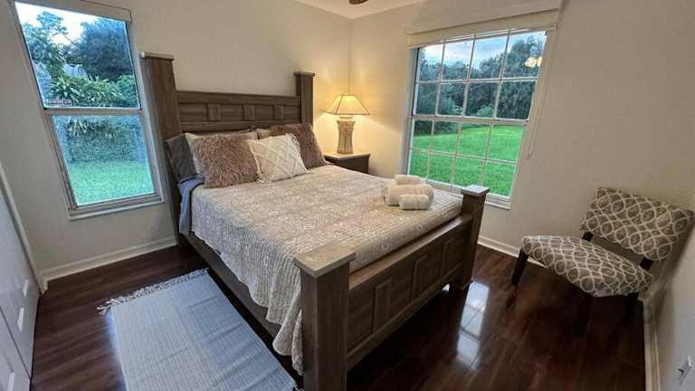 Die klimatisierte Villa besteht aus 3 separaten Schlafzimmern und einem Wohnzimmer. Außerdem sind zwei Badezimmer vorhanden und die Ausstattung umfasst einen Kühlschrank sowie einen Flachbild-TV.
