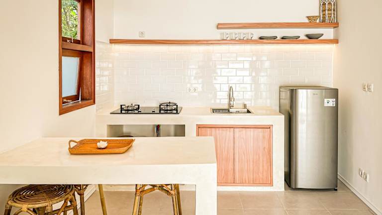 Die Wohneinheiten sind mit einer Terrasse ausgestattet, die einen Blick auf den Pool bietet. Jede Einheit verfügt über eine Küche mit einem Kühlschrank und einer Minibar. Zudem sind ein eigenes Badezimmer mit einem Bidet sowie ein voll ausgestattetes Bad mit Dusche und kostenlosen Pflegeprodukten vorhanden.