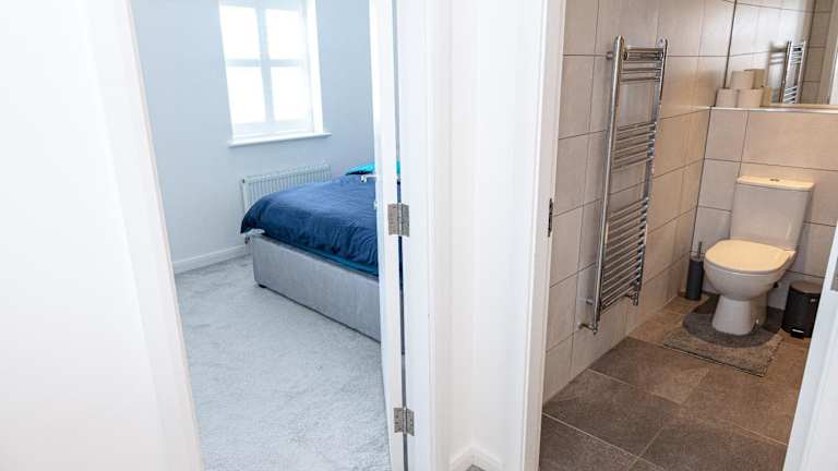 Die Unterkunft Private room in a new build bietet ein Privatzimmer in einem Neubau mit Garten. Es stehen kostenlose Parkmöglichkeiten zur Verfügung.