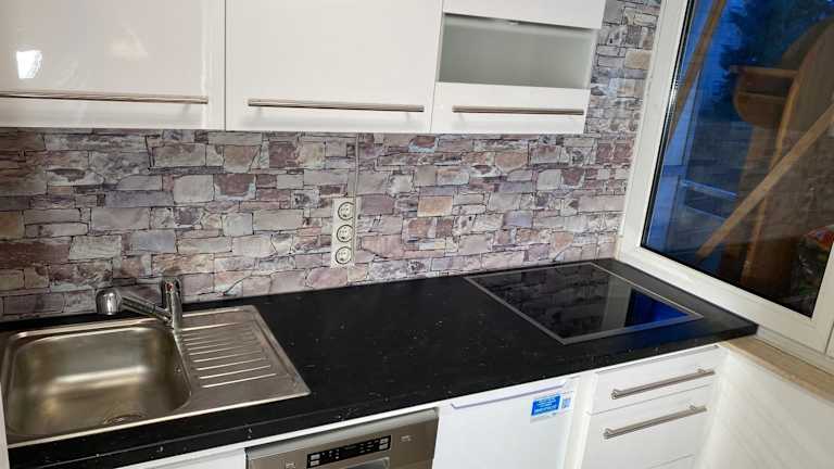Die Küche der Wohnung ist ausgestattet mit einem Kühlschrank, Geschirrspüler, Oven, Kaffeemaschine und Wasserkocher. Essenslieferung in die Unterkunft ist möglich, jedoch sind keine weiteren Restaurantleistungen angegeben.