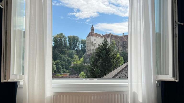Die Unterkunft Privatzimmer Burgpanorama ist in Raabs an der Thaya gelegen, etwa 45 km von Schloss Telč und der historischen Altstadt von Telč entfernt. Burg Heidenreichstein befindet sich 34 km und Schloss Frain 35 km von der Unterkunft entfernt.