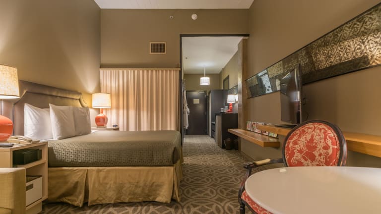 Das Proximity Hotel verfügt über 147 Nichtraucherzimmer, die mit modernen Annehmlichkeiten ausgestattet sind. Jedes Zimmer bietet eine Klimaanlage, einen Safe und einen Schreibtisch. Zur Ausstattung gehören auch ein Kühlschrank, eine Mikrowelle und eine Kaffeemaschine. Ein Flachbildfernseher mit Kabelanschluss und kostenloses WLAN sind ebenfalls vorhanden. Die Badezimmer verfügen über eine Dusche, einen Haartrockner und Bademäntel. Rollstuhlgerechte Zimmer mit barrierefreien Badezimmern sind auf Anfrage erhältlich.